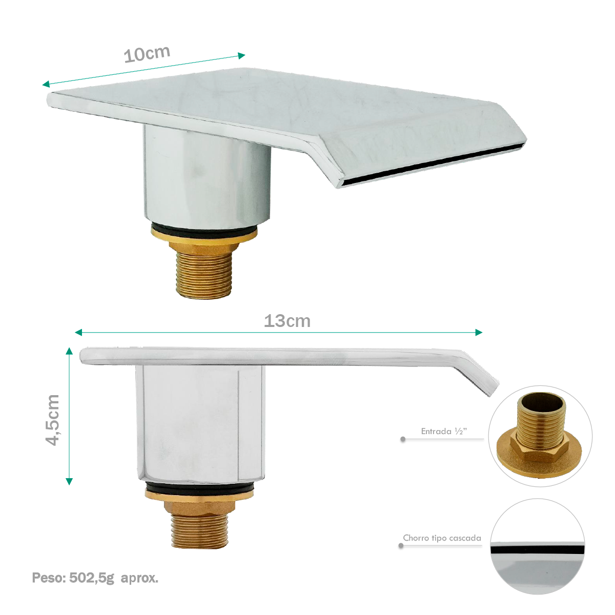 Pico de Tina Cuadrado Plateado Cromado