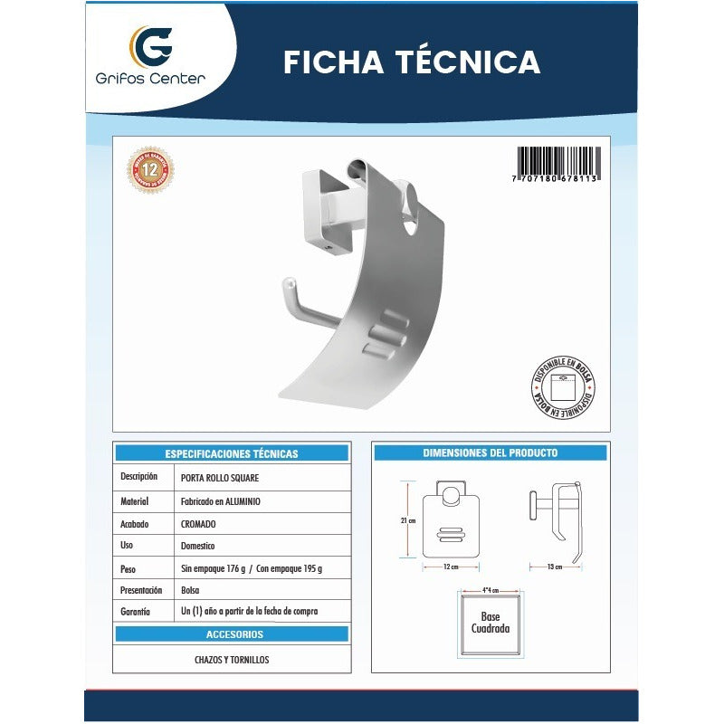 Portarollo Base Cuadrada en Aluminio SKU:YW134 -Venta factura régimen común. -También contamos con variedad de tonos. -Somos fabricantes de sus ideas. ----SE REALIZA ACABADO (ANTIGUO) A TODA CLASE DE GRIFERÍAS NUEVAS O USADAS----- ¿Generan factura legal y electrónica? Si. generamos factura legal con IVA , somos régimen común y realizamos facturación electrónica. ¿Mi compra tiene garantía? Si. todos nuestros productos son nuevos y cuentan con garantía oficial. Se entregan en sus empaques o cajas. ¿Tiene punto de venta? Somos GRIFOS CENTER y tenemos nuestro punto de venta, puedes recoger tus productos directamente si deseas. ¿Dónde están ubicados? No solo somos tienda online, también tenemos tienda física con un amplio Stock de nuestros productos para envío inmediato, GRIFOS CENTER esta ubicado en el Norte de Bogotá podemos entregarte el mismo día dependiendo el producto y cantidad. •Recuerda que somos GRIFOS CENTER para mayor información •Puedes recoger en nuestro punto de venta. ¿ Son fabricantes? - Si, GRIFOS CENTER es fabricante directo de griferÍas VINTAGE (fabricando tus ideas y ofreciendo diferentes estilos de acabados para tu grifería). Además brindamos una amplia variedad de productos institucionales y para el hogar con la mejor calidad. ¿Ofrecen productos al por mayor? - Si, en GRIFOS CENTER contamos con un amplio inventario y variedad de productos para atender proyectos grandes como lo son las constructoras , hoteles , colegios y grandes superficies. ¿ Hacen envíos a nivel nacional? - Si GRIFOS CENTER realiza envíos a nivel nacional. ¿Se pueden retirar los productos en el punto de venta? Tenemos la posibilidad de retirar el producto en nuestro punto de venta o enviar por otra transportadora colocando recojo en el domicilio del vendedor este ultimo el comprador cancela el envio cuando llegue el producto. ¿Qué garantías manejan? -Según la referencia comprada generalmente tiene garantía de 1 año donde nos podrás informar cualquier inconveniente NOTA: Los logos en la publicacion son marcas de agua el producto te llegara sin este logo ----------------------SOMOS IMPORTADORES CON MARCA PROPIA---------------------------
