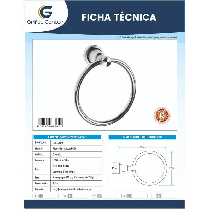 Toallero Aro en Aluminio SKU:YW027 -Venta factura régimen común. -También contamos con variedad de tonos. -Somos fabricantes de sus ideas. ----SE REALIZA ACABADO (ANTIGUO) A TODA CLASE DE GRIFERÍAS NUEVAS O USADAS----- ¿Generan factura legal y electrónica? Si. generamos factura legal con IVA , somos régimen común y realizamos facturación electrónica. ¿Mi compra tiene garantía? Si. todos nuestros productos son nuevos y cuentan con garantía oficial. Se entregan en sus empaques o cajas. ¿Tiene punto de venta? Somos GRIFOS CENTER y tenemos nuestro punto de venta, puedes recoger tus productos directamente si deseas. ¿Dónde están ubicados? No solo somos tienda online, también tenemos tienda física con un amplio Stock de nuestros productos para envío inmediato, GRIFOS CENTER esta ubicado en el Norte de Bogotá podemos entregarte el mismo día dependiendo el producto y cantidad. •Recuerda que somos GRIFOS CENTER para mayor información •Puedes recoger en nuestro punto de venta. ¿ Son fabricantes? - Si, GRIFOS CENTER es fabricante directo de griferÍas VINTAGE (fabricando tus ideas y ofreciendo diferentes estilos de acabados para tu grifería). Además brindamos una amplia variedad de productos institucionales y para el hogar con la mejor calidad. ¿Ofrecen productos al por mayor? - Si, en GRIFOS CENTER contamos con un amplio inventario y variedad de productos para atender proyectos grandes como lo son las constructoras , hoteles , colegios y grandes superficies. ¿ Hacen envíos a nivel nacional? - Si GRIFOS CENTER realiza envíos a nivel nacional. ¿Se pueden retirar los productos en el punto de venta? Tenemos la posibilidad de retirar el producto en nuestro punto de venta o enviar por otra transportadora colocando recojo en el domicilio del vendedor este ultimo el comprador cancela el envio cuando llegue el producto. ¿Qué garantías manejan? -Según la referencia comprada generalmente tiene garantía de 1 año donde nos podrás informar cualquier inconveniente NOTA: Los logos en la publicacion son marcas de agua el producto te llegara sin este logo ----------------------SOMOS IMPORTADORES CON MARCA PROPIA---------------------------
