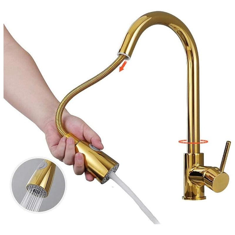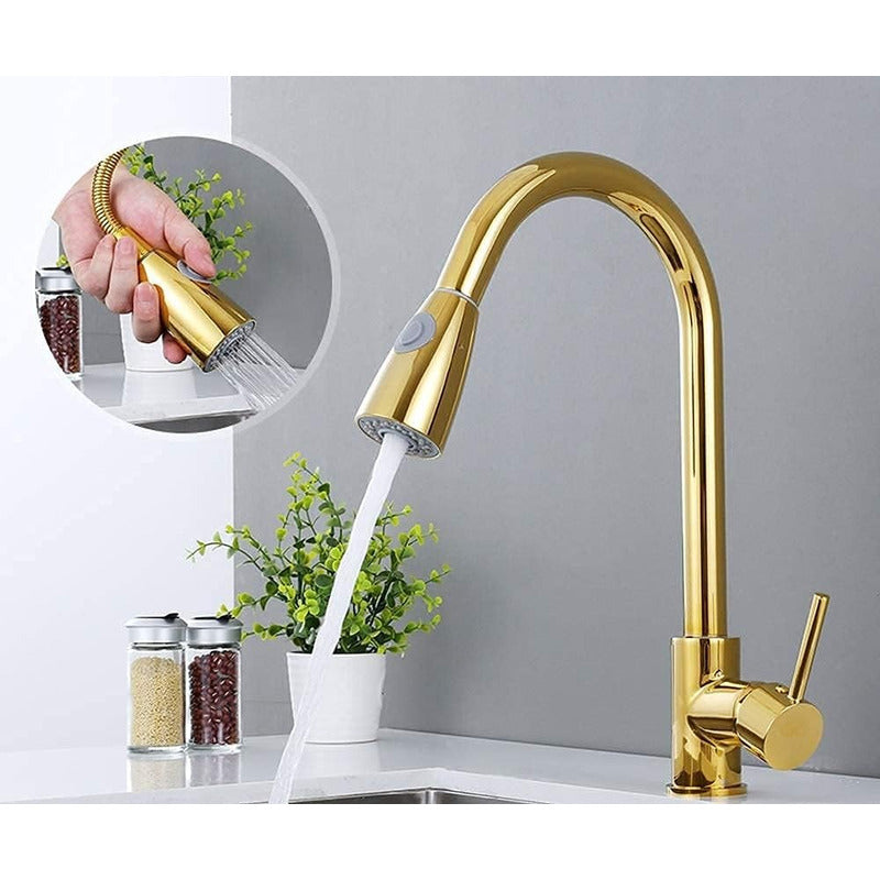 Grifería Monocontrol Lavaplatos Extraible Oro Brillante