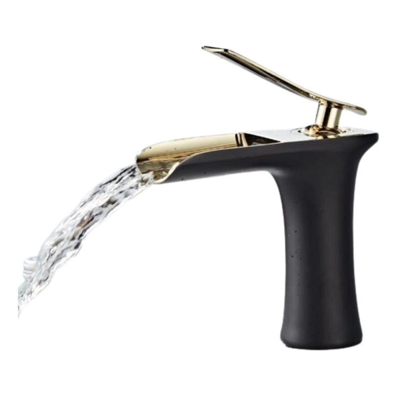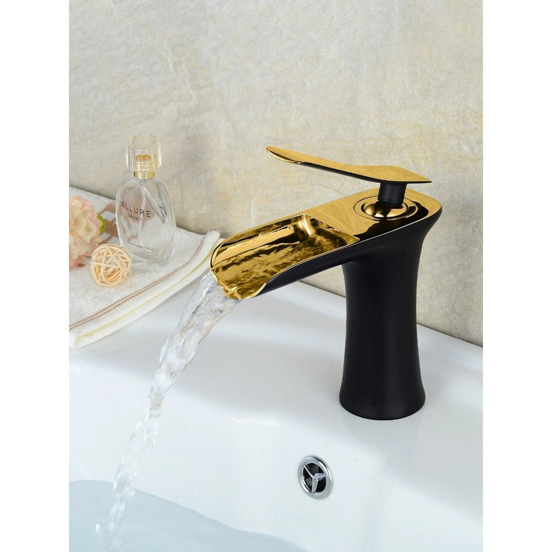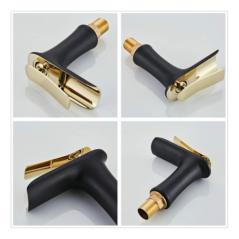 Grifería Monocontrol Lavamanos Bajo Cascada Negro Y Oro