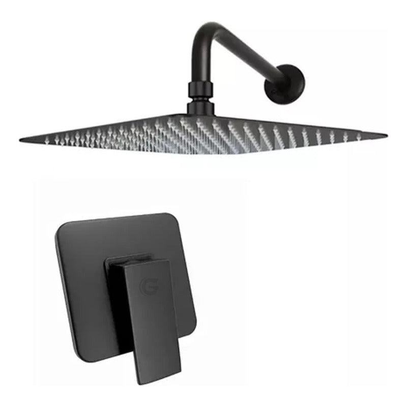 Kit Ducha Cuadrada De 15cm + Monocontrol Cuadrado Negro Mate