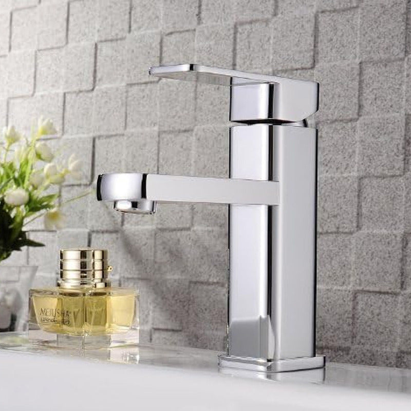 Grifería Monocontrol Lavamanos Media Cuadrada Cromada