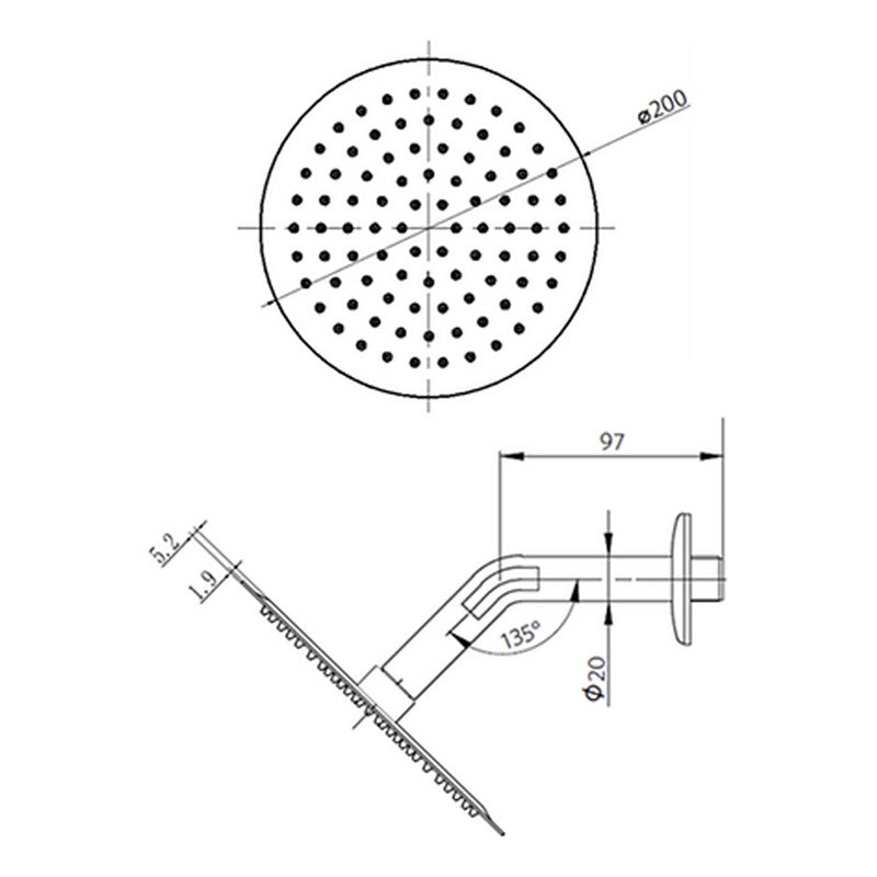 Ducha / Regadera Redonda Saona 8puLG Cromada