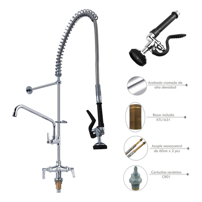 Grifería Monocontrol Lavaplatos Institu Alto 2 Salida Crom