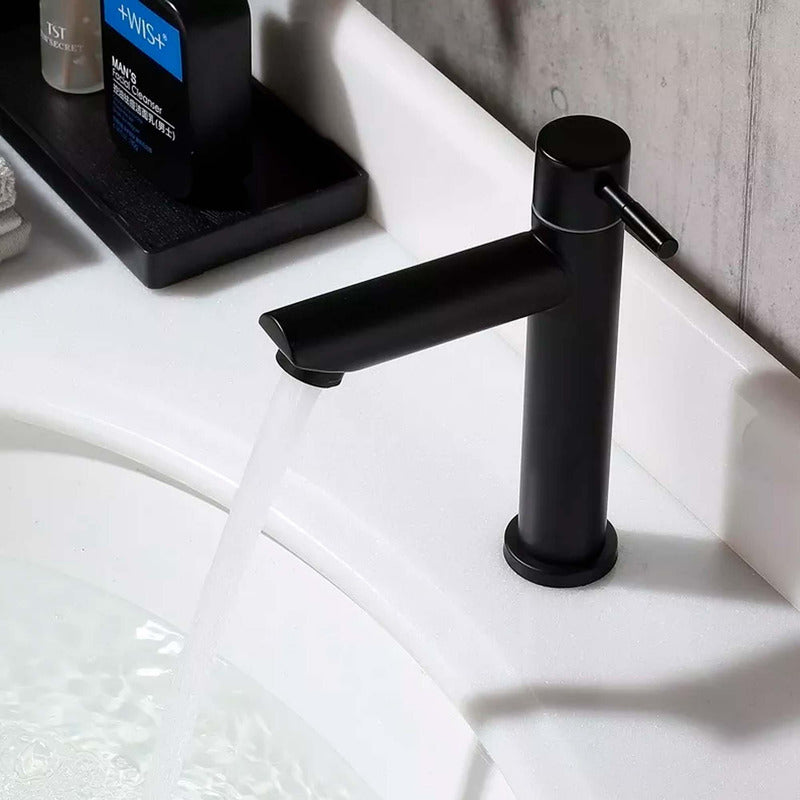 Grifería Lavamanos Agua Fría Baja Cuello Recto Negro Mate