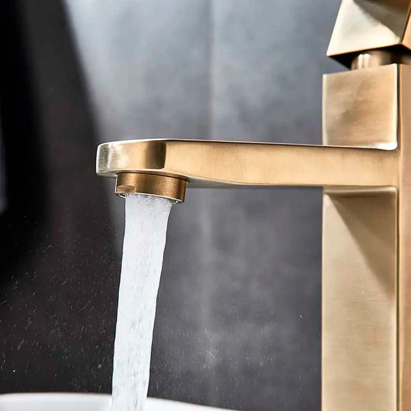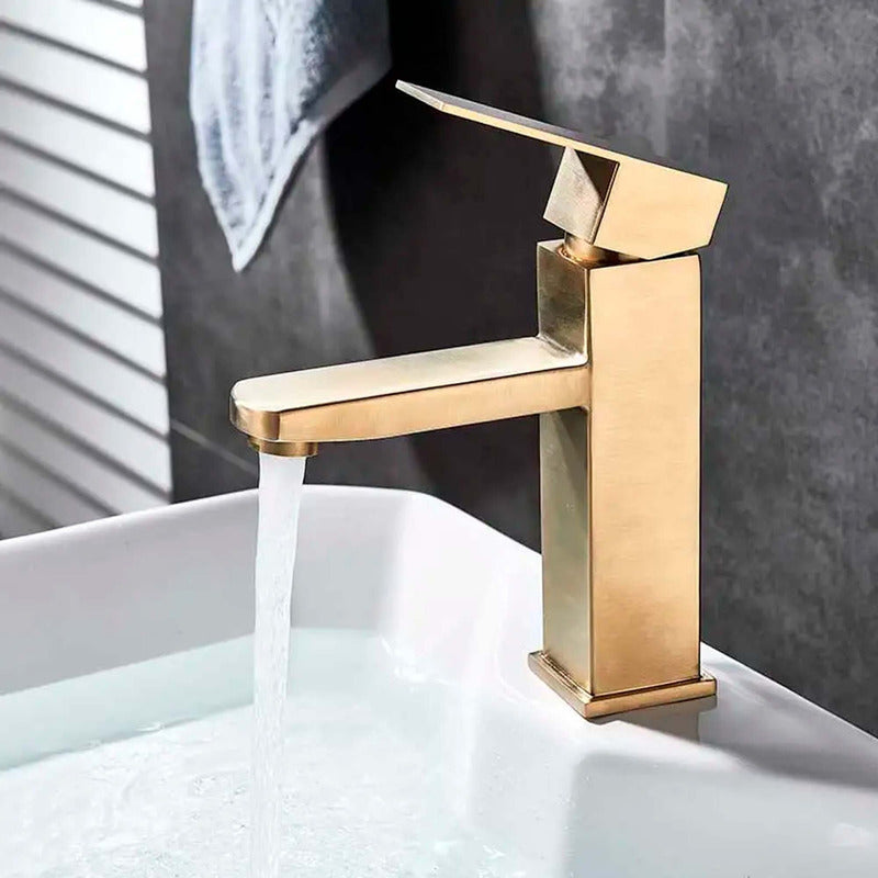 Grifería Lavamanos Monocontrol Bajo Oro Cepillado Vintage