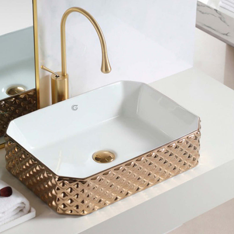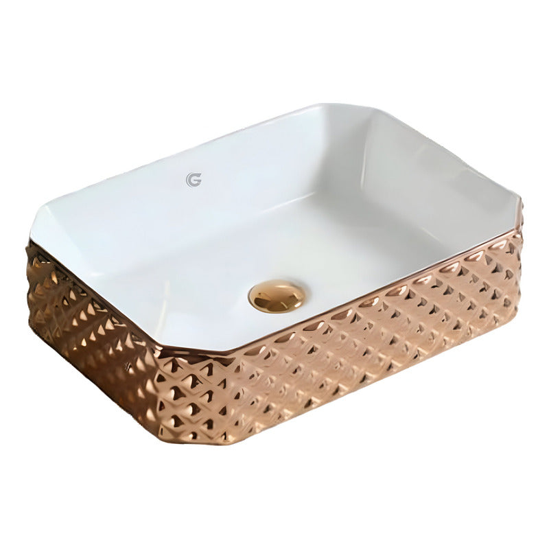 Lavamanos Rectangular De Sobreponer Dorado Vintage
