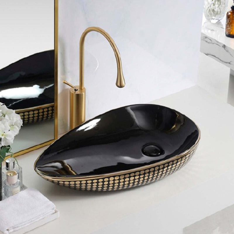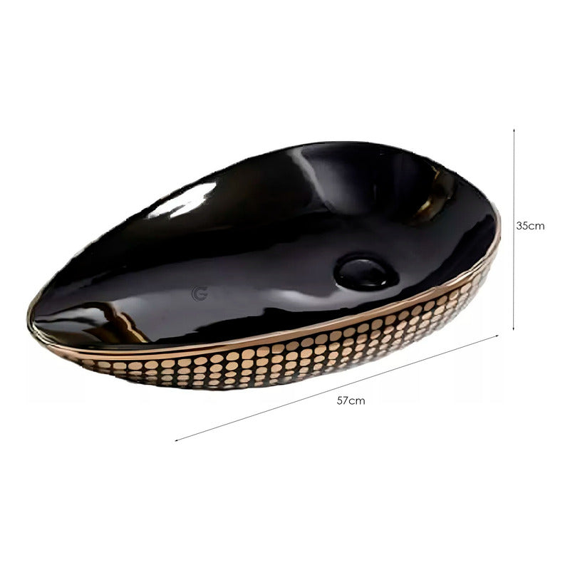 Lavamanos De Sobreponer Ovalado Negro/dorado