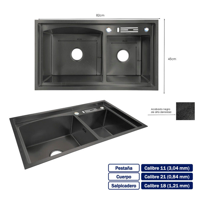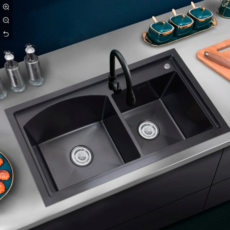 Lavaplatos Doble Pozo Con Escurridor Negro+ Accesorios