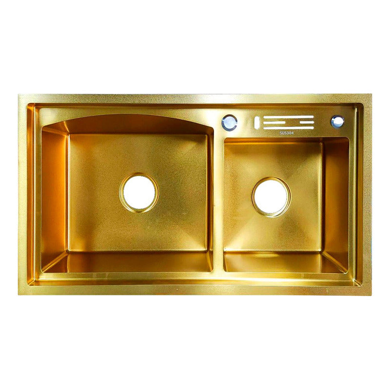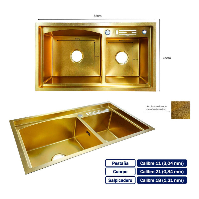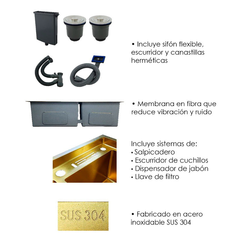Lavaplatos Doble Pozo Con Escurridor Dorado + Accesorios