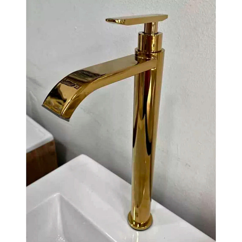 Kit Lavamanos Canoa+grifo Oro Brillante Ag.fria+push-acople