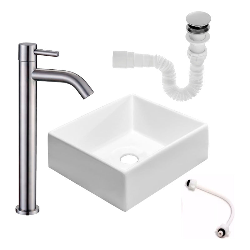 Kit Lavamanos Cuadrado+griferia Agua Fria Brillante+push