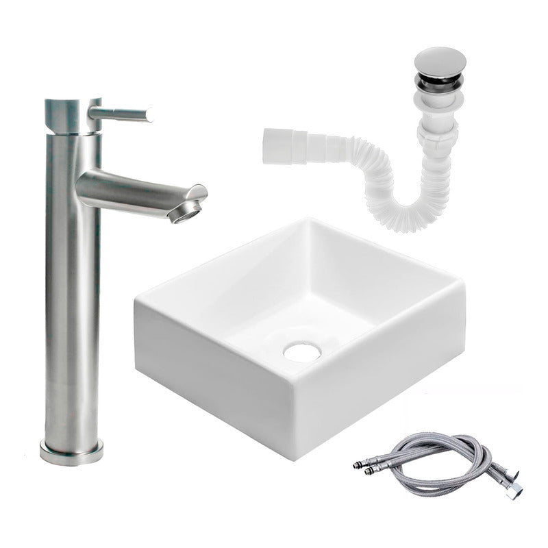 Kit Lavamanos Cuadrado+grifo Monocontrol Satinada Recto+push