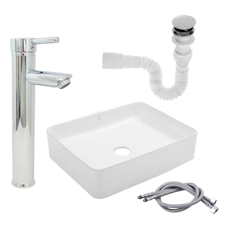 Incluye: -Lavamanos Rectangular blanco -Grifería monocontrol alta -Push flexible tapa cromada PREGUNTAS FRECUENTES ¿GENERAN FACTURA? Sí, emitimos facturas legales con IVA incluido. Somos un régimen común y realizamos facturación electrónica. ¿MANEJAN VARIEDAD DE TONOS? Sí, manejamos una amplia gama de colores, como bronce y cobre antiguo, para personalizar tus griferías y accesorios. Realizamos acabados de aspecto antiguo en griferías nuevas o usadas. Transformamos tus griferías para darles un toque clásico y elegante. ¿SON FABRICANTES? Sí, somos fabricantes de tus ideas. Fabricamos hermosas griferías y accesorios de excelente calidad para embellecer tus espacios de la mejor manera. En GRIFOS CENTER, convertimos tus ideas en realidad. Fabricamos griferías VINTAGE y ofrecemos diversos estilos de acabados antiguos para tus griferías y accesorios. Además, proporcionamos una amplia variedad de productos de alta calidad para el hogar y productos institucionales para tus proyectos. ¿GENERAN FACTURA LEGAL Y ELECTRÓNICA? Sí, generamos factura legal con IVA incluido y ofrecemos facturación electrónica. ¿MI COMPRA TIENE GARANTÍA? Todos nuestros productos son nuevos y cuentan con garantía oficial de 1 año. Se entregan en sus empaques o cajas originales. ¿TIENEN PUNTO DE VENTA? Sí, somos GRIFOS CENTER y tenemos un punto de venta físico donde puedes recoger tus productos directamente si lo deseas. ¿DÓNDE ESTÁN UBICADOS? Nos encontramos en el Norte de Bogotá. Tenemos un amplio stock de nuestros productos para envío inmediato. Además, ofrecemos la opción de recoger tus compras en nuestro punto de venta. ¿MANEJAN PRODUCTOS PARA PROYECTOS? Sí, ofrecemos una amplia variedad de productos y contamos con un extenso inventario para atender proyectos grandes, como constructoras, hoteles, colegios y grandes superficies. ¿OFRECEN PRODUCTOS AL POR MAYOR? Sí, contamos con un extenso inventario y una gran variedad de productos para atender tus solicitudes. ¿HACEN ENVÍOS A NIVEL NACIONAL? Sí, GRIFOS CENTER realiza envíos a nivel nacional. ¿SE PUEDEN RETIRAR LOS PRODUCTOS EN EL PUNTO DE VENTA? Ofrecemos la opción de retirar productos en nuestro punto de venta o de enviarlos por otra transportadora, seleccionando ""recojo en el domicilio del vendedor"". En este caso, el comprador se encarga del costo del envío. NOTA IMPORTANTE: Los logos en la publicación son marcas de agua y el producto te llegará sin este logo. ----------------------SOMOS IMPORTADORES CON MARCA PROPIA-----------------------