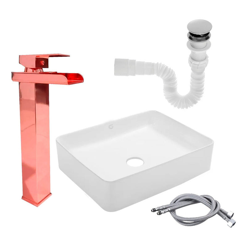 Kit Lavamanos Rectangular+grifo Monocontrol Cascada Ros+push