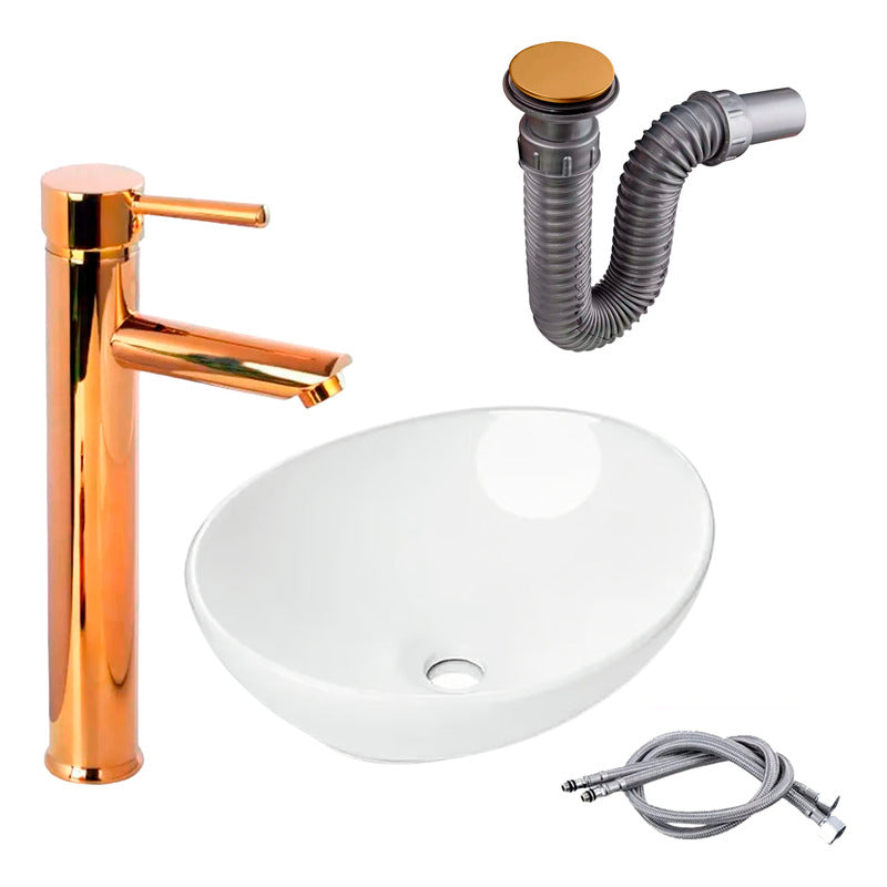Kit Lavamanos Canoa+griferia Monoc.recta Brillante+push Oro
