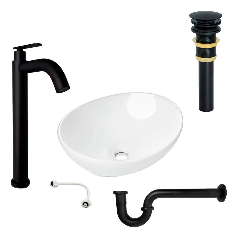 Combo Lavamanos Canoa + Grif.fria Negra + Push Y Sifon Gf3