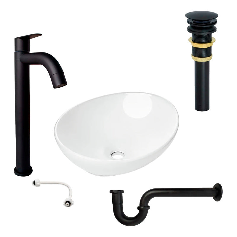 Combo Lavamanos Canoa + Grif.fria Negra + Push Y Sifon Gf2