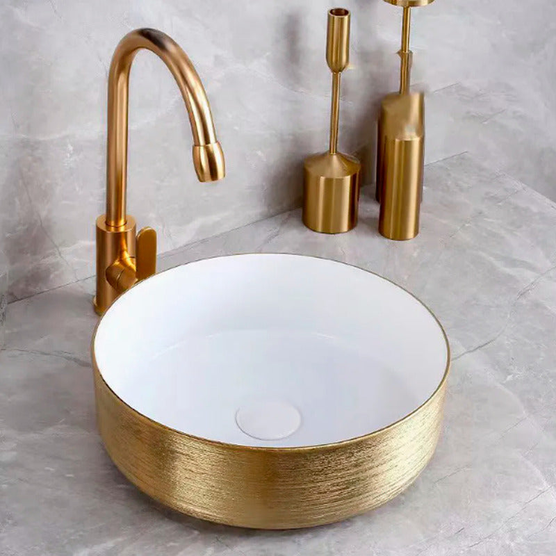 Lavamanos De Sobreponer Redondo Oro Olimpus 36*36*12cm