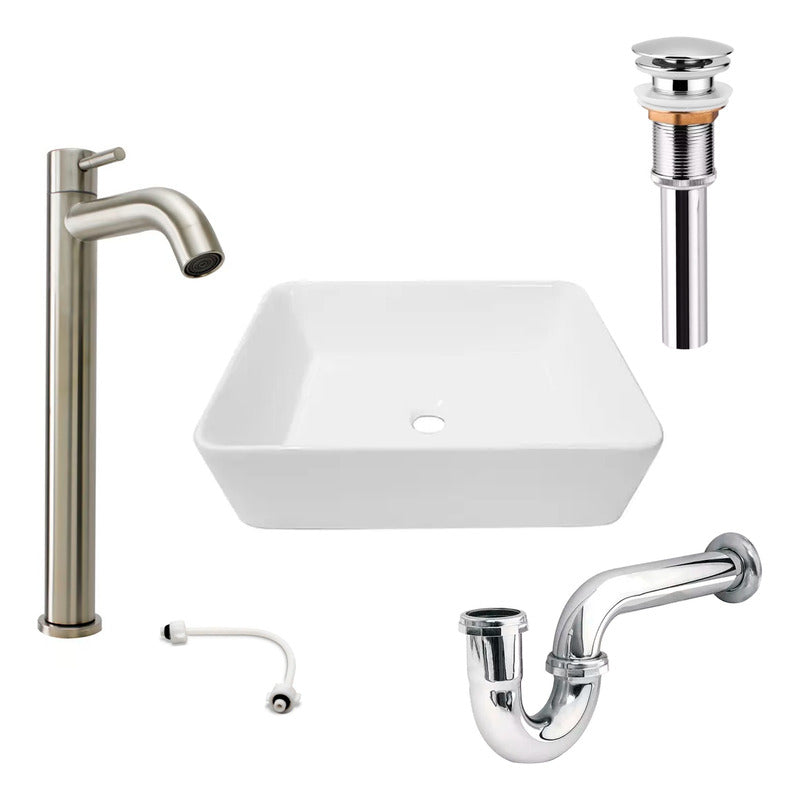 Combo Lavamanos Rectang.+griferia Agua Fria+push Y Sifon Gf3