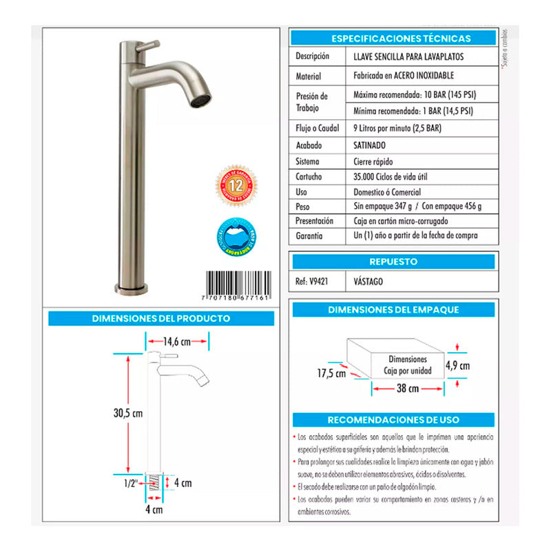 Combo Lavamanos Rectang.+Griferia Agua Fria+Push y Sifon GF3 SKU: YW017 BOCH-YW080 BOCH-16161552 UF-BYJ-S023SM INCLUYE: -Grifería Agua fría Alta Plateada -Lavamanos rectangular Porcelana Blanco -Push de lavamanos cromado -Sifón en "P" Acero cromado PREGUNTAS FRECUENTES ¿GENERAN FACTURA? Sí, emitimos facturas legales con IVA incluido. Somos un régimen común y realizamos facturación electrónica. ¿MANEJAN VARIEDAD DE TONOS? Sí, manejamos una amplia gama de colores, como bronce y cobre antiguo, para personalizar tus griferías y accesorios. Realizamos acabados de aspecto antiguo en griferías nuevas o usadas. Transformamos tus griferías para darles un toque clásico y elegante. ¿SON FABRICANTES? Sí, somos fabricantes de tus ideas. Fabricamos hermosas griferías y accesorios de excelente calidad para embellecer tus espacios de la mejor manera. En GRIFOS CENTER, convertimos tus ideas en realidad. Fabricamos griferías VINTAGE y ofrecemos diversos estilos de acabados antiguos para tus griferías y accesorios. Además, proporcionamos una amplia variedad de productos de alta calidad para el hogar y productos institucionales para tus proyectos. ¿GENERAN FACTURA LEGAL Y ELECTRÓNICA? Sí, generamos factura legal con IVA incluido y ofrecemos facturación electrónica. ¿MI COMPRA TIENE GARANTÍA? Todos nuestros productos son nuevos y cuentan con garantía oficial de 1 año. Se entregan en sus empaques o cajas originales. ¿TIENEN PUNTO DE VENTA? Sí, somos GRIFOS CENTER y tenemos un punto de venta físico donde puedes recoger tus productos directamente si lo deseas. ¿DÓNDE ESTÁN UBICADOS? Nos encontramos en el Norte de Bogotá. Tenemos un amplio stock de nuestros productos para envío inmediato. Además, ofrecemos la opción de recoger tus compras en nuestro punto de venta. ¿MANEJAN PRODUCTOS PARA PROYECTOS? Sí, ofrecemos una amplia variedad de productos y contamos con un extenso inventario para atender proyectos grandes, como constructoras, hoteles, colegios y grandes superficies. ¿OFRECEN PRODUCTOS AL POR MAYOR? Sí, contamos con un extenso inventario y una gran variedad de productos para atender tus solicitudes. ¿HACEN ENVÍOS A NIVEL NACIONAL? Sí, GRIFOS CENTER realiza envíos a nivel nacional. ¿SE PUEDEN RETIRAR LOS PRODUCTOS EN EL PUNTO DE VENTA? Ofrecemos la opción de retirar productos en nuestro punto de venta o de enviarlos por otra transportadora, seleccionando "recojo en el domicilio del vendedor". En este caso, el comprador se encarga del costo del envío. NOTA IMPORTANTE: Los logos en la publicación son marcas de agua y el producto te llegará sin este logo. ----------------------SOMOS IMPORTADORES CON MARCA PROPIA-----------------------