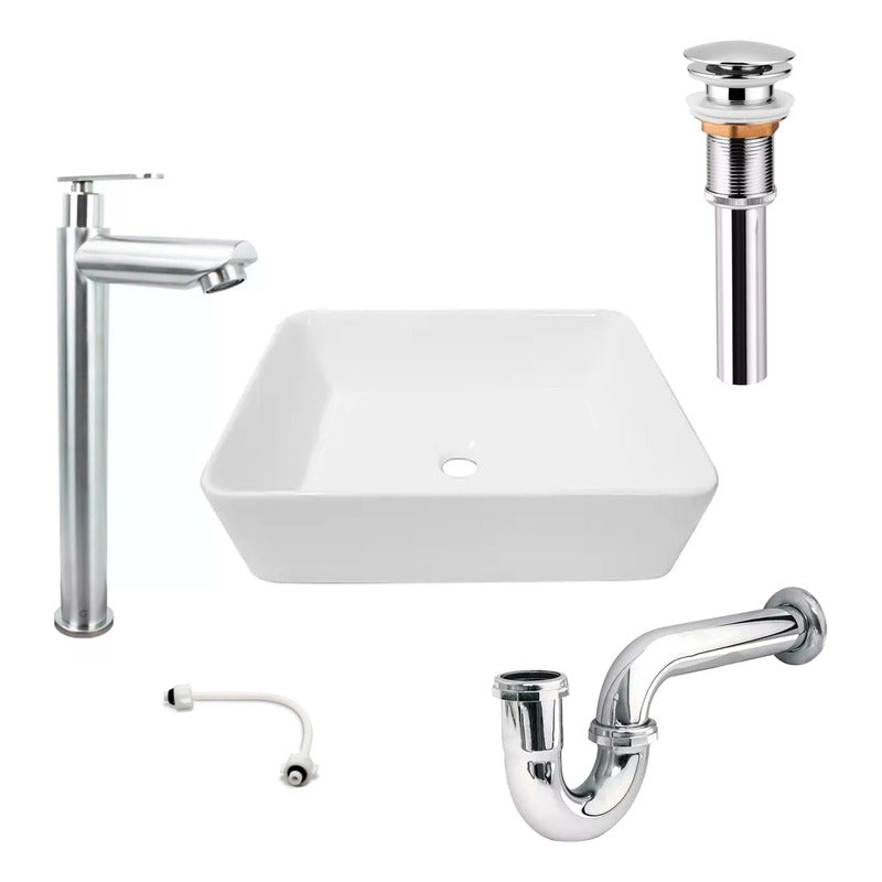 Combo Lavamanos Rectang.+griferia Agua Fria+push Y Sifon Gf1