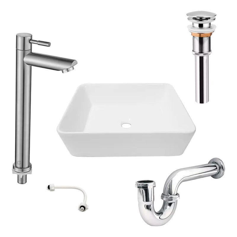 Combo Lavamanos Rectang.+griferia Agua Fria+push Y Sifon Gf4
