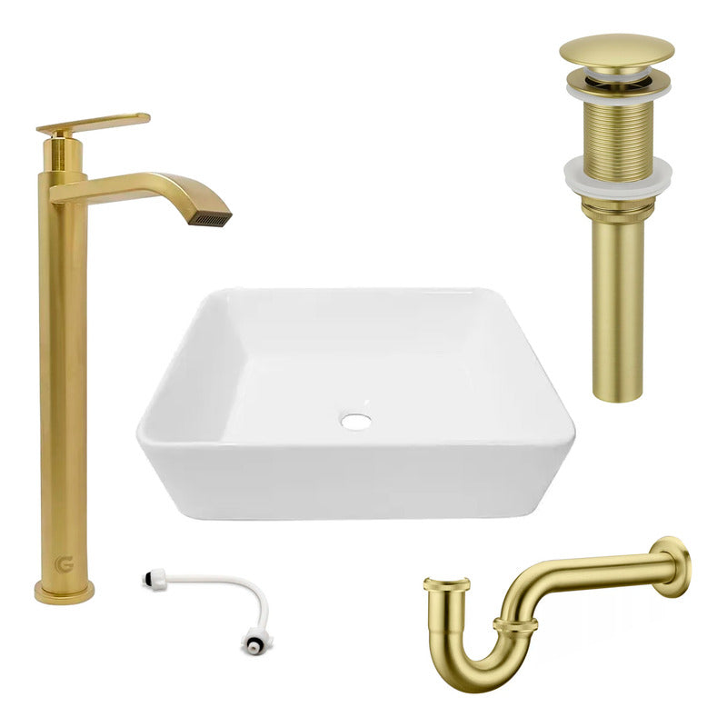 Combo Lavamanos Rectang.+griferia Ag.fria+push+sifon Oro Cep