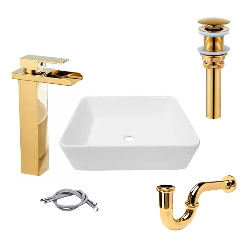 Combo Lavamanos Rectang.+griferia Monoc +push+sifon Oro Gf5