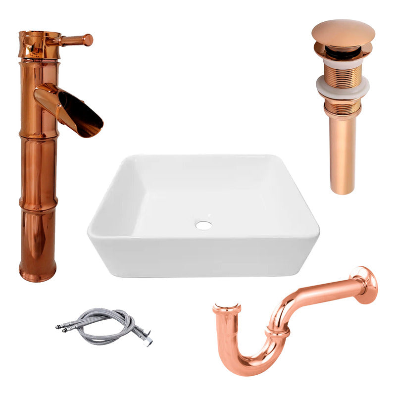 Combo Lavamanos Rectang+Griferia Monoc.+Push+Sifon Bamb Rosa SKU: FT8081R BRU-YW080 BOCH-F16R BRU-SP02R BRU INCLUYE: -Grifería Monocontrol Alta Oro Rosa Brillante -Lavamanos Rectangular Porcelana Blanco -Push de lavamanos Oro Rosa Brillante -Sifón en "P" Oro Rosa PREGUNTAS FRECUENTES ¿GENERAN FACTURA? Sí, emitimos facturas legales con IVA incluido. Somos un régimen común y realizamos facturación electrónica. ¿MANEJAN VARIEDAD DE TONOS? Sí, manejamos una amplia gama de colores, como bronce y cobre antiguo, para personalizar tus griferías y accesorios. Realizamos acabados de aspecto antiguo en griferías nuevas o usadas. Transformamos tus griferías para darles un toque clásico y elegante. ¿SON FABRICANTES? Sí, somos fabricantes de tus ideas. Fabricamos hermosas griferías y accesorios de excelente calidad para embellecer tus espacios de la mejor manera. En GRIFOS CENTER, convertimos tus ideas en realidad. Fabricamos griferías VINTAGE y ofrecemos diversos estilos de acabados antiguos para tus griferías y accesorios. Además, proporcionamos una amplia variedad de productos de alta calidad para el hogar y productos institucionales para tus proyectos. ¿GENERAN FACTURA LEGAL Y ELECTRÓNICA? Sí, generamos factura legal con IVA incluido y ofrecemos facturación electrónica. ¿MI COMPRA TIENE GARANTÍA? Todos nuestros productos son nuevos y cuentan con garantía oficial de 1 año. Se entregan en sus empaques o cajas originales. ¿TIENEN PUNTO DE VENTA? Sí, somos GRIFOS CENTER y tenemos un punto de venta físico donde puedes recoger tus productos directamente si lo deseas. ¿DÓNDE ESTÁN UBICADOS? Nos encontramos en el Norte de Bogotá. Tenemos un amplio stock de nuestros productos para envío inmediato. Además, ofrecemos la opción de recoger tus compras en nuestro punto de venta. ¿MANEJAN PRODUCTOS PARA PROYECTOS? Sí, ofrecemos una amplia variedad de productos y contamos con un extenso inventario para atender proyectos grandes, como constructoras, hoteles, colegios y grandes superficies. ¿OFRECEN PRODUCTOS AL POR MAYOR? Sí, contamos con un extenso inventario y una gran variedad de productos para atender tus solicitudes. ¿HACEN ENVÍOS A NIVEL NACIONAL? Sí, GRIFOS CENTER realiza envíos a nivel nacional. ¿SE PUEDEN RETIRAR LOS PRODUCTOS EN EL PUNTO DE VENTA? Ofrecemos la opción de retirar productos en nuestro punto de venta o de enviarlos por otra transportadora, seleccionando "recojo en el domicilio del vendedor". En este caso, el comprador se encarga del costo del envío. NOTA IMPORTANTE: Los logos en la publicación son marcas de agua y el producto te llegará sin este logo. ----------------------SOMOS IMPORTADORES CON MARCA PROPIA-----------------------