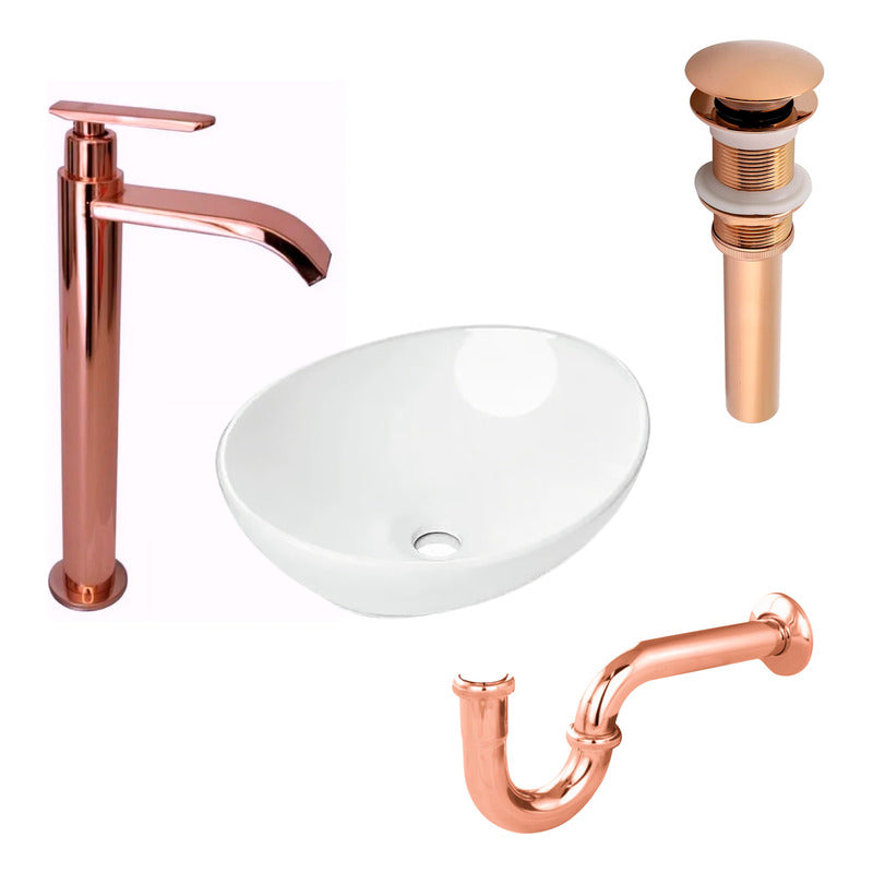 Combo Lavamanos Canoa+griferia Ag.fria+push+sifon Oro Rosa
