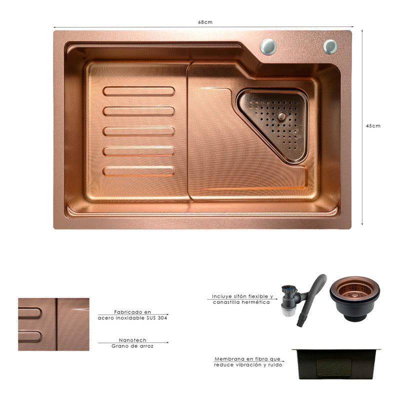 Lavaplatos Acero 304 Rose Sistema De Riel 68x45cm+accesorios
