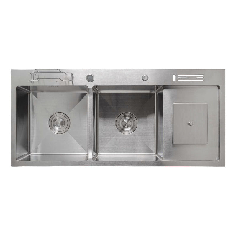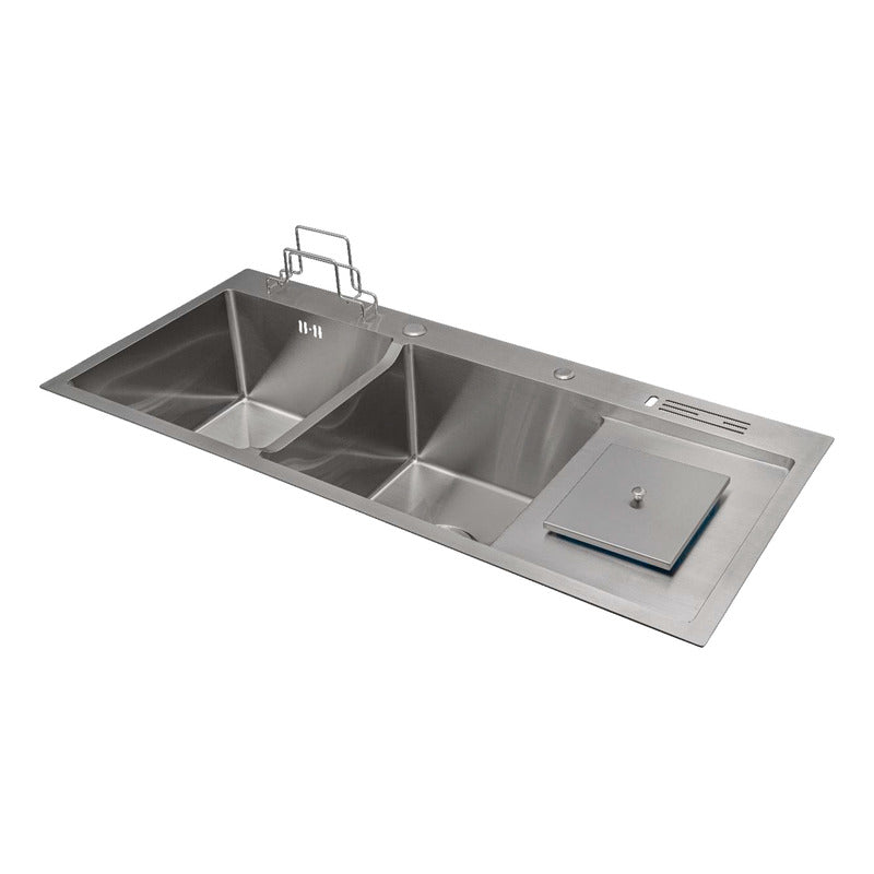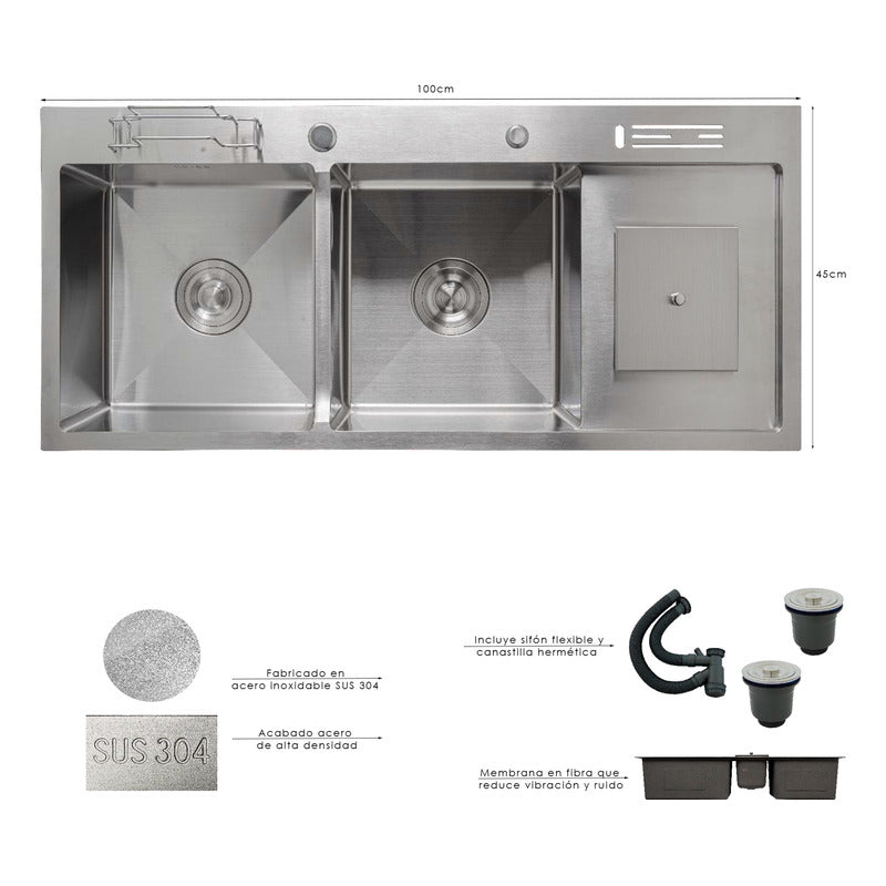 Lavaplatos Plateado Doble Poceta 100x45cm +accesorios