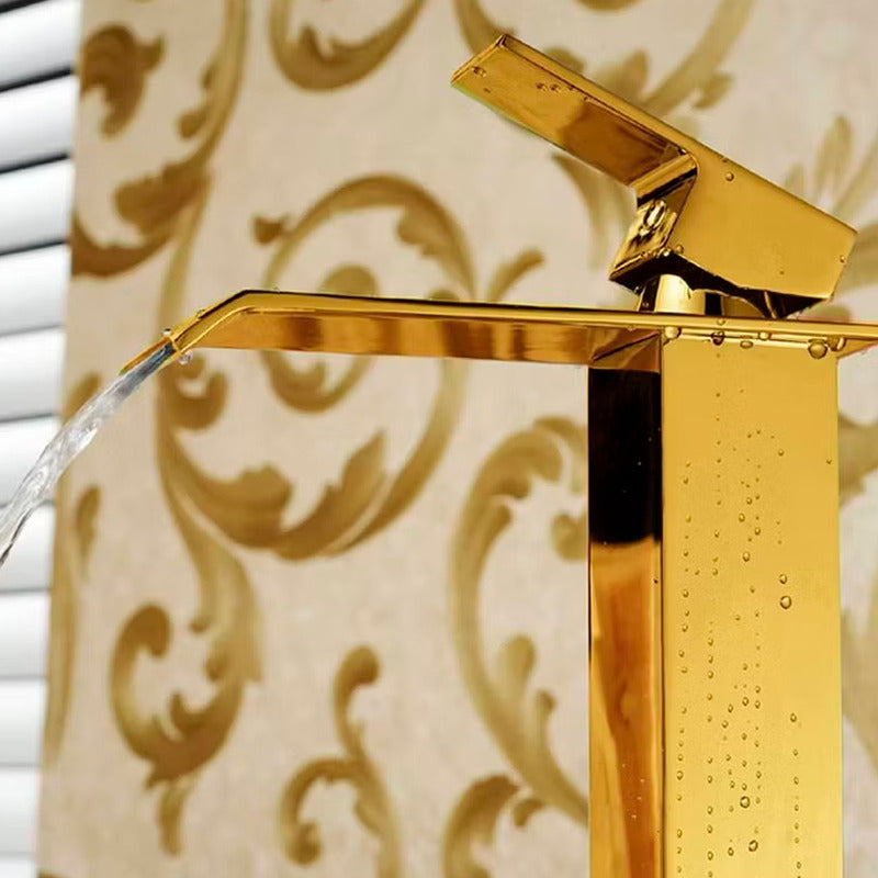 Grifería Monocontrol Lavamanos Alta Cascada Oro Vintage