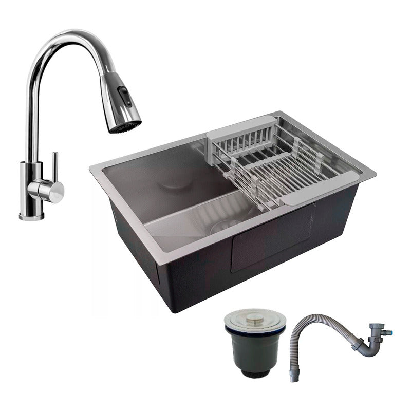 Combo Lavaplatos 60*45cm+griferia Extraible Cromo+accesorios