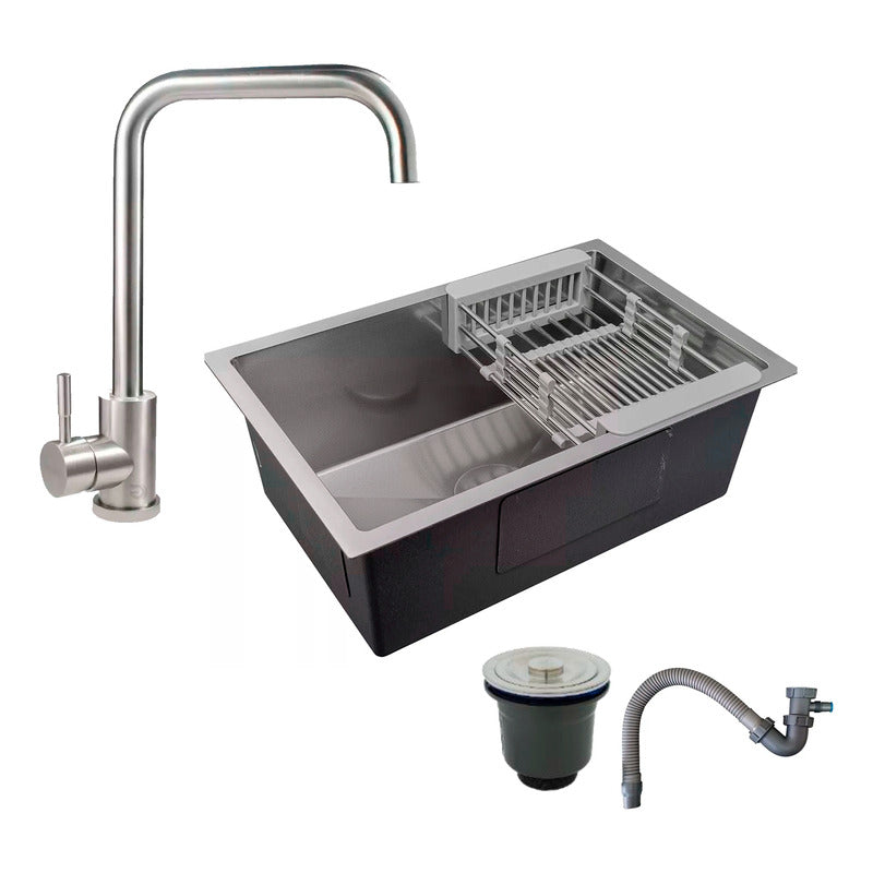 Combo Lavaplatos 60*45cm+griferia Plata Cuello 7+accesorios