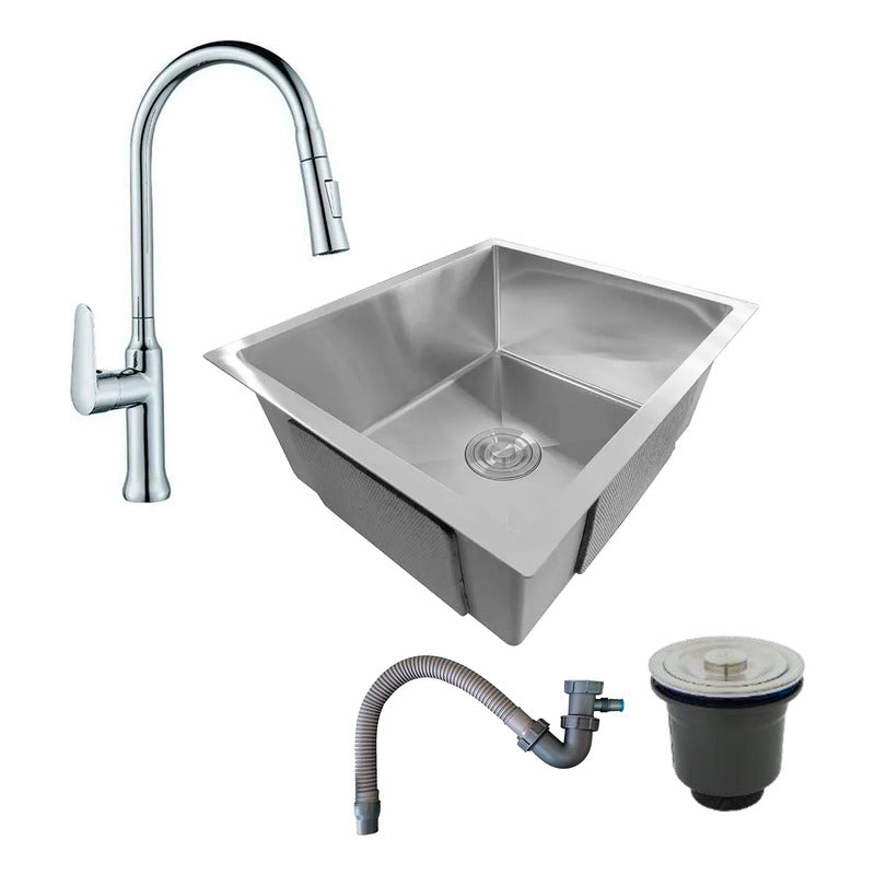 Combo Lavaplatos 51*45cm+grif.extraible Cromo+accesorios