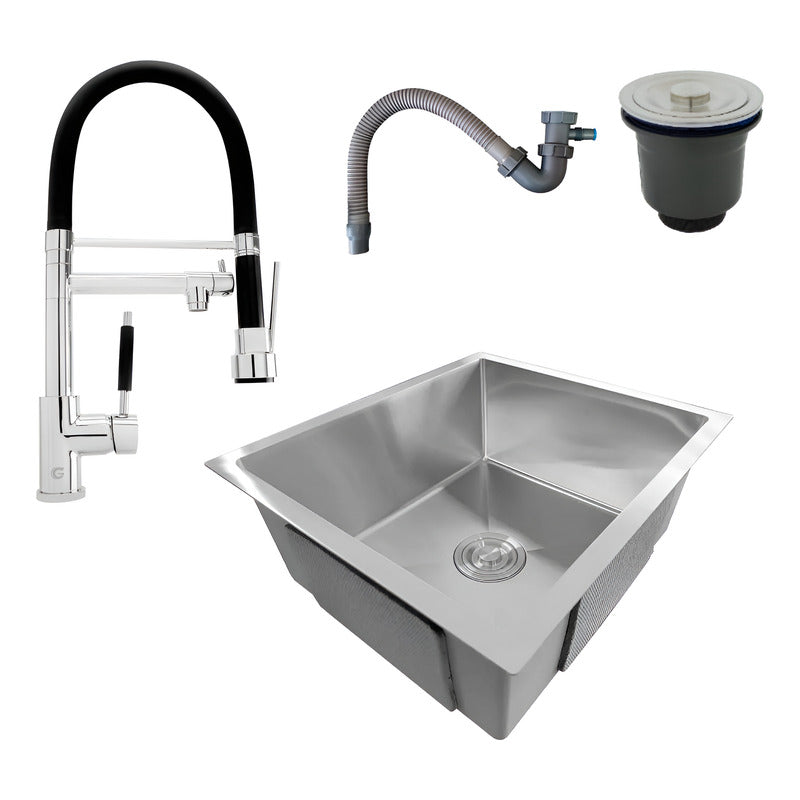 Combo Lavaplatos 51*45cm+griferia Escualizable+accesorios