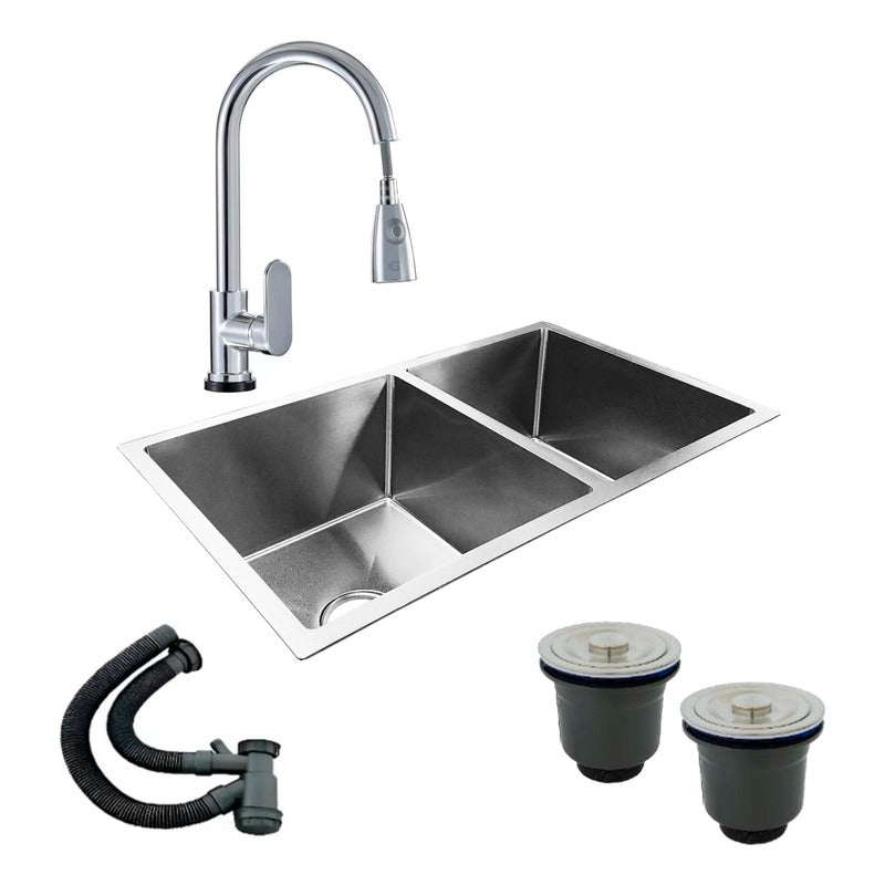 Combo Lavaplatos Doble 77*45cm+grif.extra.cromo+accesorios