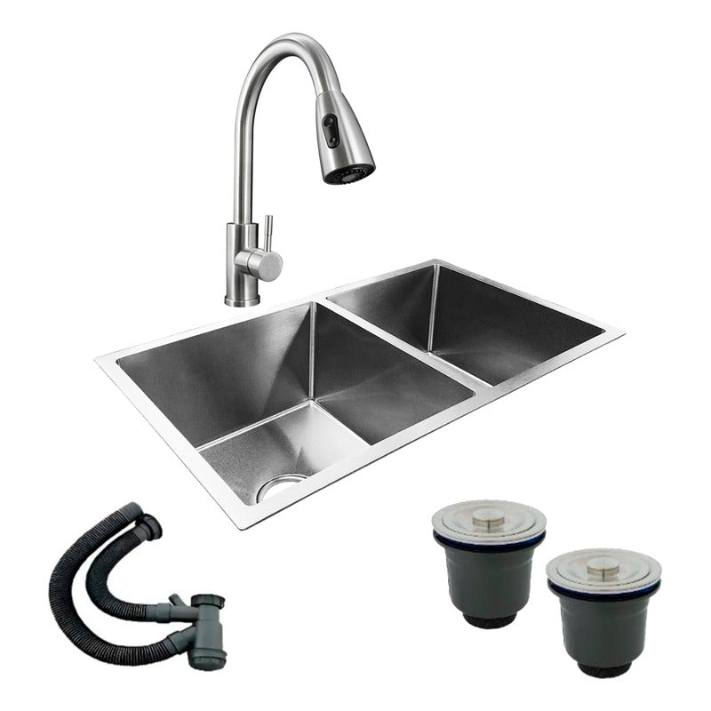 Combo Lavaplatos Doble 77*45cm+griferia Satin+accesorios