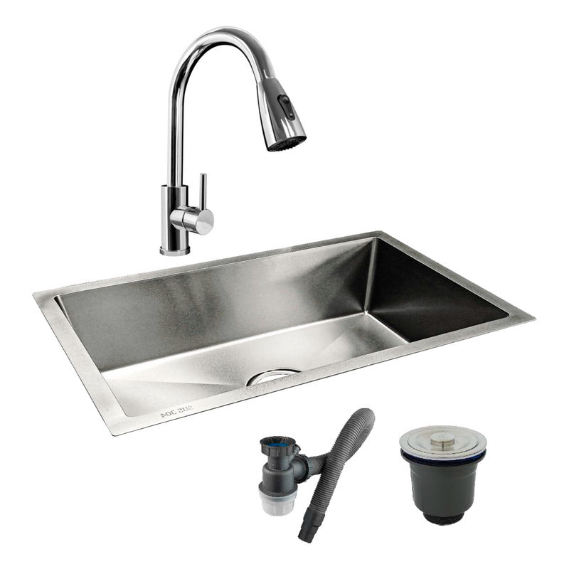 Combo Lavaplatos 100*40cm+griferia Extraible Cromo+accesorio