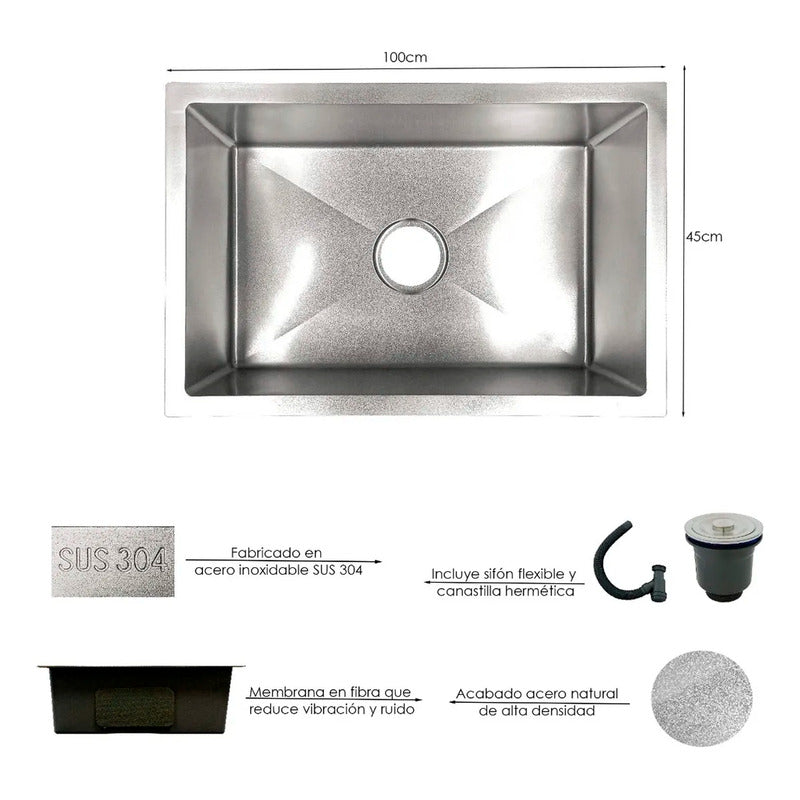 Combo Lavaplatos 100*40cm+griferia Extraible Satin+accesorio