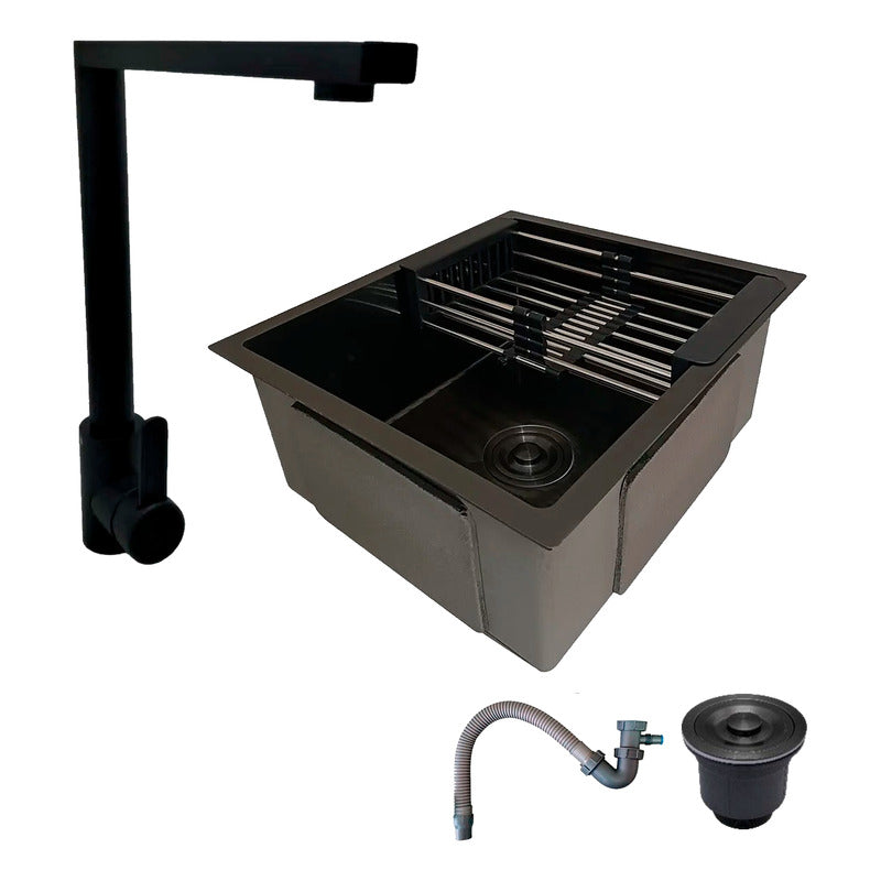 Combo Lavaplatos 51*45cm+griferia Lvp Negra L+ Accesorios