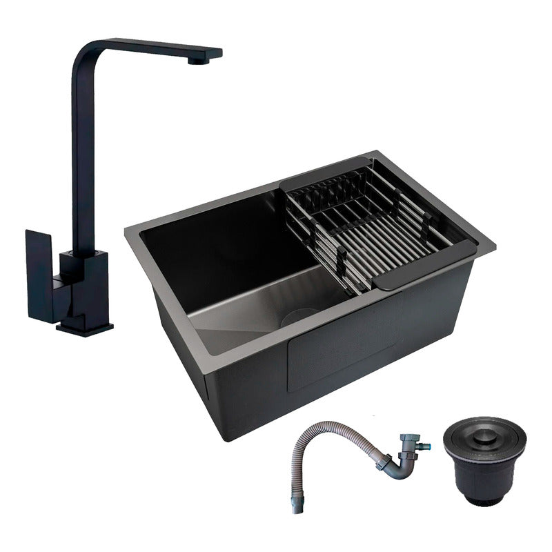 Combo Lavaplatos 70*45cm+griferia Lvp Negra L + Accesorios