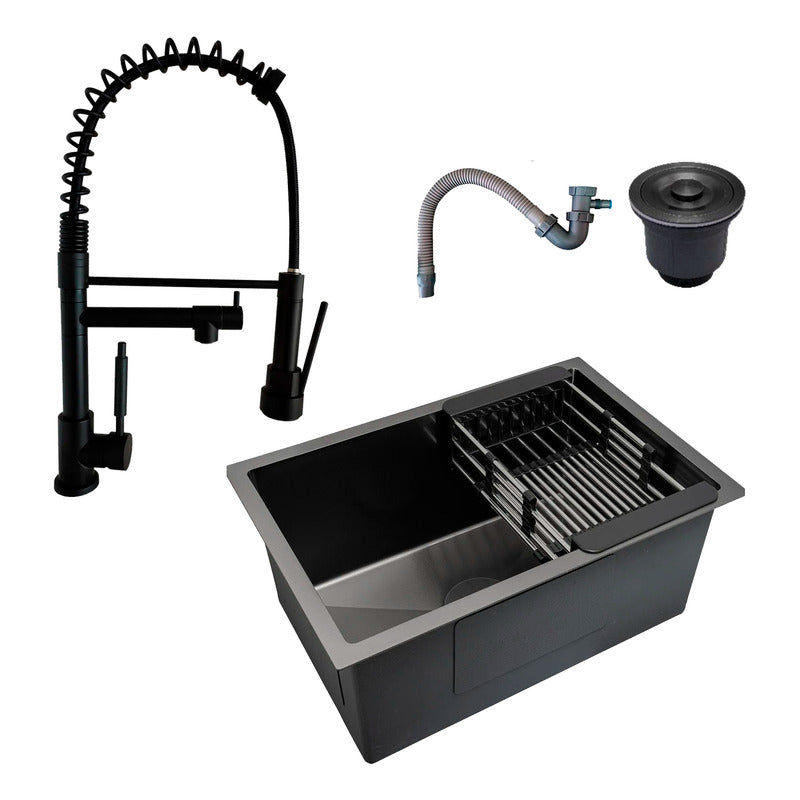 Combo Lavaplatos 60*45cm+griferia Lvp Negra 1905+ Accesorios