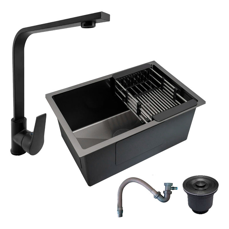 Combo Lavaplatos 70*45cm+griferia Lvp Negra Notte+ Accesorio