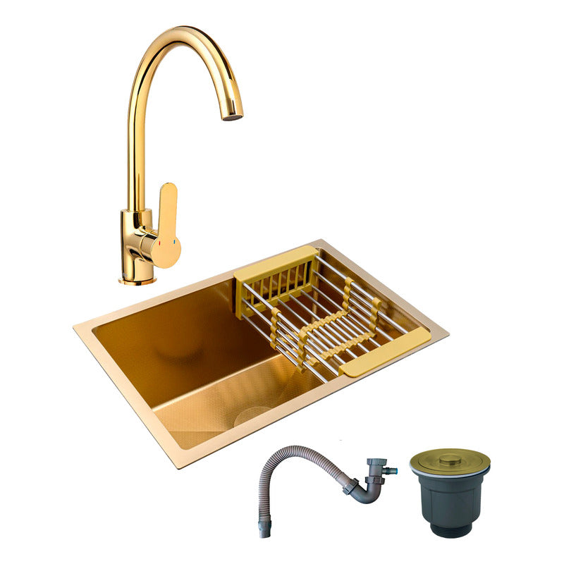Combo Lavaplatos 51*45cm+griferia Lvp Oro Brillante+acc