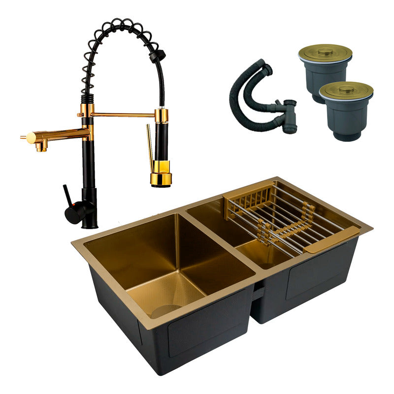Combo Lavaplatos Doble 77*45cm+griferia Lvp Gourmet Oro+acc