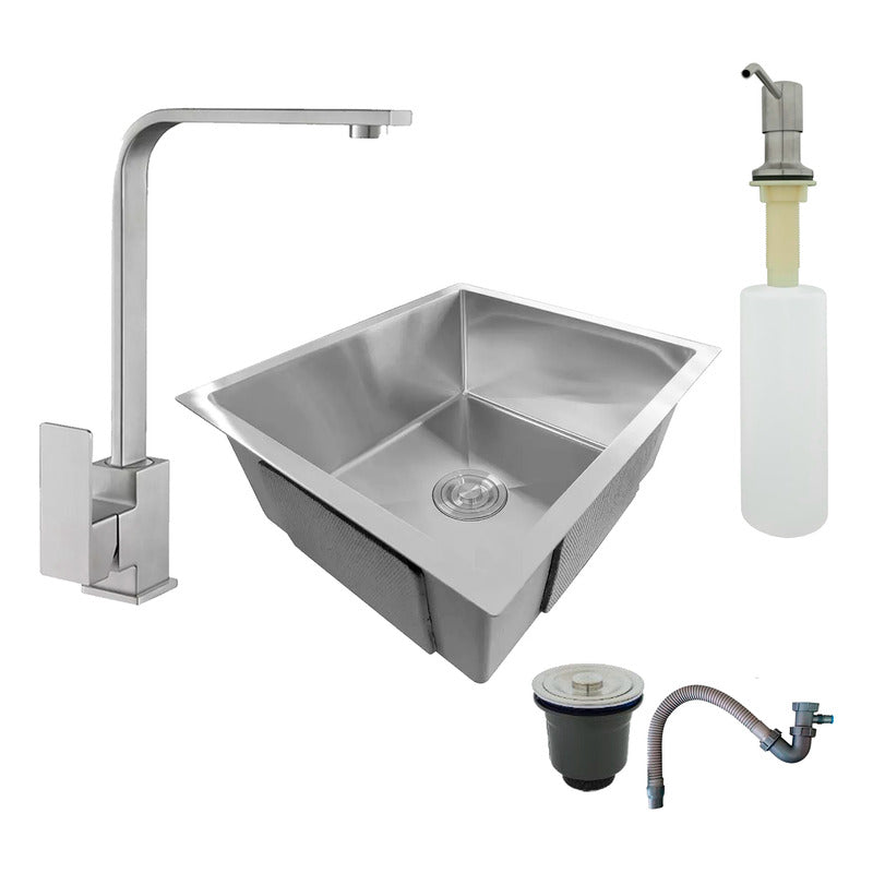 Combo Lavaplatos 60*45cm+griferia Satin+dispensador Y Acc